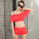 韩版清新分体泳衣 女士小胸聚拢保守裙式泳装 学生波点比基尼