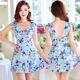 羽克女士清新泳衣显瘦遮肚裙式带钢托连体游泳衣 美女保守温泉泳