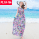 夏雪纺碎花大码显瘦中长款吊带连衣裙波西米亚海边度假长裙沙滩裙