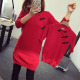 FISHSTYLE亲子装原创中国风中国红旗袍款纯棉针织衫连衣裙母女装