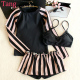 泳衣女士保守学生韩国分体裙式长袖条纹运动2017新款显瘦防晒泳装