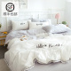 水洗棉四件套简约纯棉纯色格子条纹床品 全棉天竺棉被套床单床笠