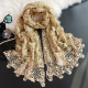 新款围巾长款春秋蕾丝刺绣纱巾高档披肩春季女士薄款装饰米色丝巾