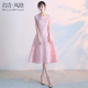 宴会晚礼服2017新款时尚粉色中长款甜美韩版毕业伴娘服连衣裙女夏
