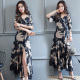 雪纺连衣裙女夏2017新款学院风七分袖大码长裙修身显瘦高腰裙子潮