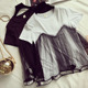 2017夏季新款圆领白色t恤女短袖拼接网纱字母印花荷叶摆打底上衣