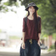 包邮 色织麻V领衬衣 露出你的锁骨 七分袖 轻薄 女款新品小衫