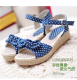 草编亚麻凉鞋中跟厚底甜美松糕鞋牛仔布露趾学生鞋扣带蝴蝶结女鞋