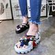 欧洲站夏季新品韩版镭射鱼嘴鞋单鞋厚底坡跟鞋休闲鞋舒适女鞋潮鞋