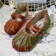 欧洲站夏季新真皮水钻彩色流苏徽章厚底波浪坡跟露趾凉鞋女鞋潮鞋