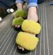 欧洲站新品糖果色獭兔毛毛鞋露趾凉鞋一字型懒人搭扣平底鞋女鞋潮