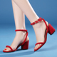 小香风2016夏新款扣带真皮女凉鞋40粗跟中跟防滑搭扣黑色露趾凉鞋