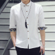 夏季白色立领7七分袖衬衫男士潮流修身薄款韩版休闲中袖衬衣寸衫
