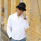 ZIOZUN春季时尚圆领白长袖衬衫男士修身型韩版潮流休闲衬衣服男装