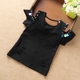 童装2017新品夏款女童短袖t恤露肩休闲半袖上衣潮纯棉短袖打底衫