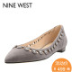 NineWest玖熙春秋镂空珠片平跟女反绒羊皮浅口尖头方跟单鞋【惠