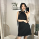 复古港味chic风黑色挂脖性感蝴蝶结绑带无袖连衣裙女百搭中长裙