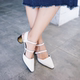 Inking Pot 新品 尖头金属跟中跟 真皮 中空细带 包头凉鞋