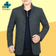 秋冬男装中年男士夹克毛呢外套休闲立领纯色男秋装修身加厚爸爸装