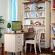 地中海转角书桌书架组合小户型书柜书房电脑桌一体实木拐角书台