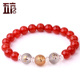 8mm玛瑙三奇手链贵人三合手串 时尚流行红色首饰礼品 送友佳品