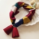 仿羊绒毛线围巾女冬天披肩两用 竖条拼接流苏加厚保暖针织大围巾