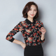 2017春装新款韩版气质修身印花雪纺衫职业衬衫女长袖上衣打底衫
