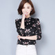 2017春季新款韩版立领气质修身淑女印花雪纺衫女长袖打底衫小衫