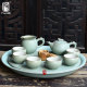 陶迷粗陶茶具套装暮云春树绿色功夫蓄水茶盘手工陶泥陶瓷整套包邮
