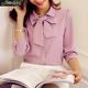 雪纺衬衫女2017春夏韩范五分七分短袖蝴蝶结系带宽松显瘦上衣衬衣