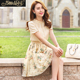 印花连衣裙2017夏季淑女修身收腰无袖韩版雪纺碎花中长款七分中袖