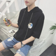 港仔夏季连帽t恤男短袖2017韩版宽松运动情侣学生五分袖带帽衫