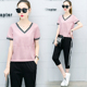 运动套装女夏季2017新款韩版时尚V领短袖七分裤跑步服休闲两件套