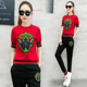 金挺娜2017夏季新款女装 韩版时尚休闲运动服两件套 短袖T恤长裤