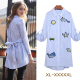 南岛风2017春装新款女装胖MM大码条纹衬衣中长款胖妹妹印花衬衫裙