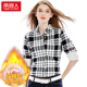 南极人纯棉短袖格子衬衫女夏韩版修身防晒衫上衣女装宽松百搭衬衣