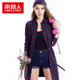 南极人学院风新款2016秋装全棉格子长袖衬衫 女时尚韩版修身女装