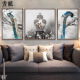 中式水墨国画梅兰竹菊客厅装饰画卧室壁画玄关餐厅挂画有框三联画