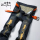 秋冬款牛仔裤男直筒修身大码男装裤子秋季厚款复古做旧长裤机车潮
