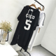 韩国新款原宿男友风宽松大码数字印花连帽中长款短袖T恤连衣裙潮