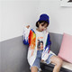春秋新款韩版宽松大码BF风时尚个性多彩泼墨连帽防晒外套女潮