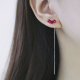 小红豆耳线纯银韩国简约长款耳环女气质耳钉吊坠个性百搭超仙耳坠