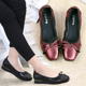 单鞋女平底百搭春夏季妈妈鞋软底真皮平跟浅口圆头大码中老年女鞋