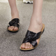 2017夏季新款女凉拖鞋子妈妈鞋中跟坡跟凉鞋子平底中老年老人拖鞋