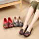 真皮妈妈鞋女春秋季平底平跟软底单鞋中老年人女鞋民族风奶奶皮鞋