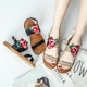 花朵凉鞋女平底平跟2017夏季新款韩版百搭一字扣带学生露趾罗马鞋