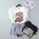 2017夏款字母卡通沙滩车图案蕾丝网纱花边飞飞袖T恤宽松显瘦上衣