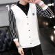 zdbz春秋新款男士衬衫领假两件T恤长袖修身休闲条纹男针织打底衫