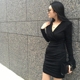 周扬青 连衣裙女2017新款春装修身显瘦V领长袖气质 麂皮小黑裙