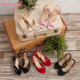 Grace gift甜美优雅扭结蝴蝶结粗跟凉鞋女一字扣露趾显腿瘦高跟鞋
